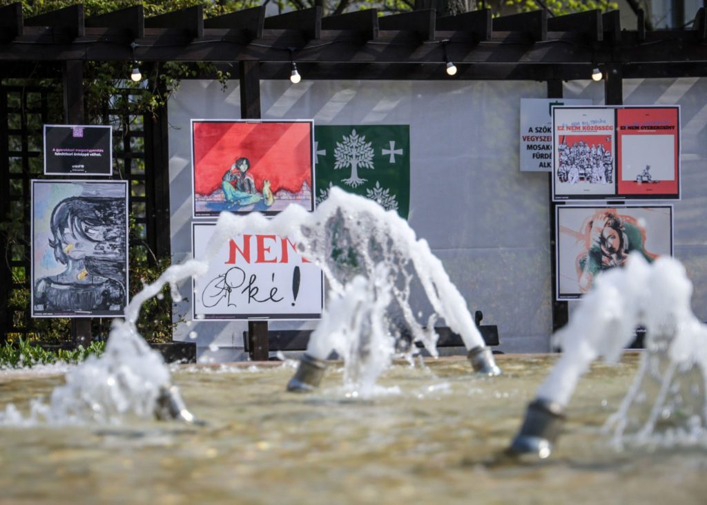 Két héten keresztül a Mechwart liget szökőkútja körül láthatók a NEM OKÉ kampány képzőművészeti pályázatának nyertes alkotásai.