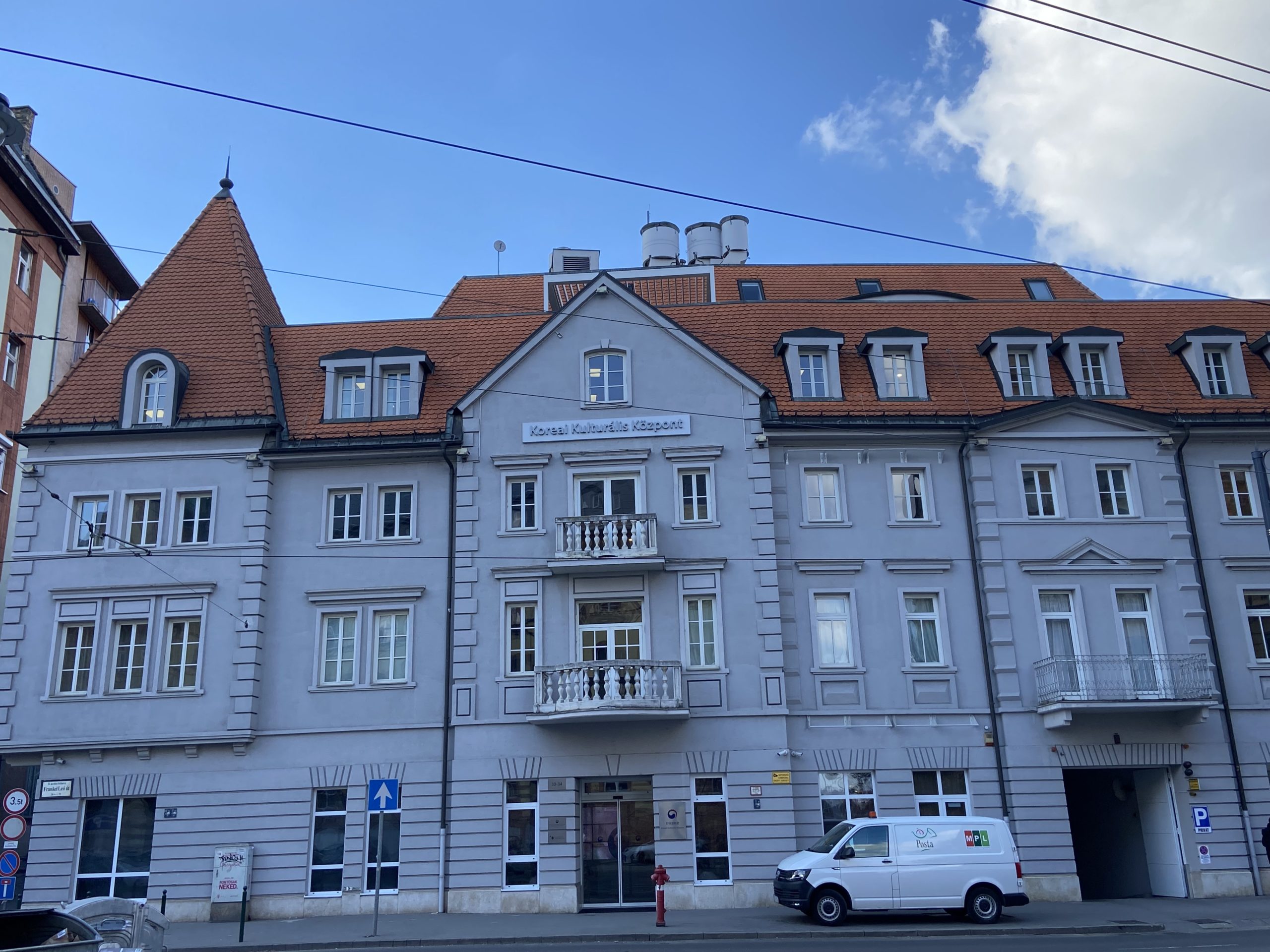 “Pontosan három éve, Magyarország és Dél-Korea diplomáciai kapcsolatfelvételének 30. évfordulóján, 2019 novemberében költöztünk a Frankel Leó útra. Az épület akkor már állt, 1992-ben irodaháznak épült, később a Közép-európai Egyetem vette birtokba és használta hosszú évekig. Otthonra leltünk itt, szeretjük a környéket, a Duna közelségét, a karnyújtásnyira emelkedő Rózsadombot, a fürdőket, így nemcsak a saját házunk, hanem az utcánk története is fontos számunkra.”– áll az üdvözlő táblán.