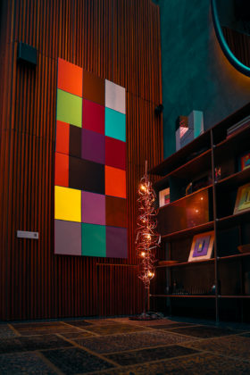 A kiállítás különlegessége, hogy nem hagyományos galériatérben, hanem egy hotel és étterem karakteres belső tereiben kapott helyet, ami izgalmas kontrasztot teremt a művek és a környezet között.