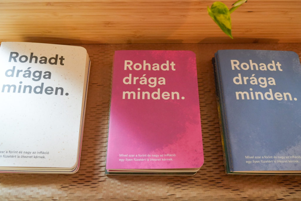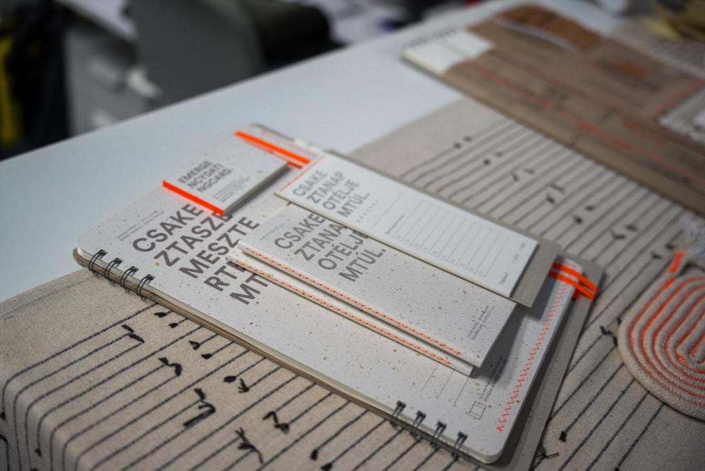 Később beszereztem egy Risograph gépet a belívekhez, és egy másik nyomtatót a színes borítókhoz. Így a teljes gyártási folyamat a kezemben van, kis szériában, magas minőségben tudok dolgozni. Ez a vállalkozásom előnye: már 25 darabtól készítek cégeknek promóciós füzetsorozatokat, amelyek használati tárgyként sokkal értékesebbek, mint egy prospektus, amit az emberek általában kidobnak.