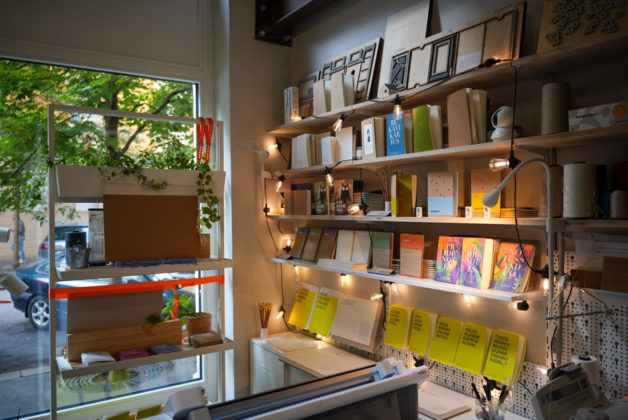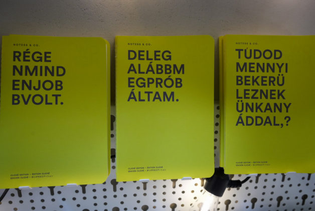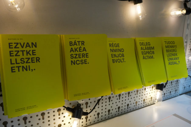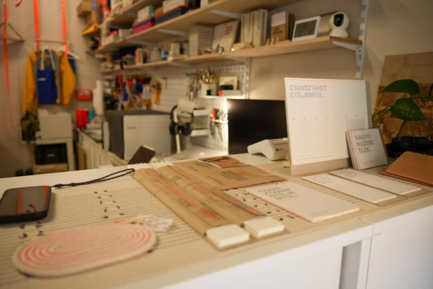 Tavaly november óta vagyok itt. A műhely nagy kirakatfelülete vonzza a járókelőket, kíváncsian benéznek, majd be is térnek. Ennek köszönhetően kezd kialakulni egy lakossági kínálat is. Készítek olyan design jegyzetfüzeteket is, amelyek sárga borítóján humoros, közhelyes mondatok szerepelnek, sokan elmosolyodnak, amikor kibetűzik őket.