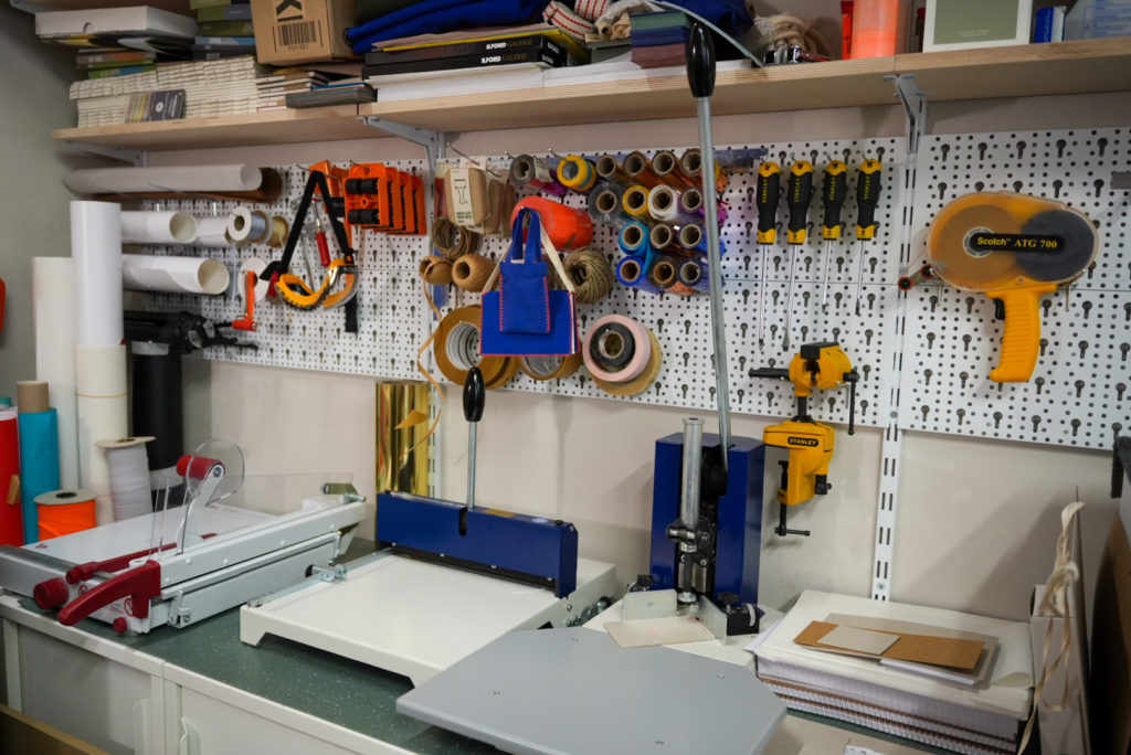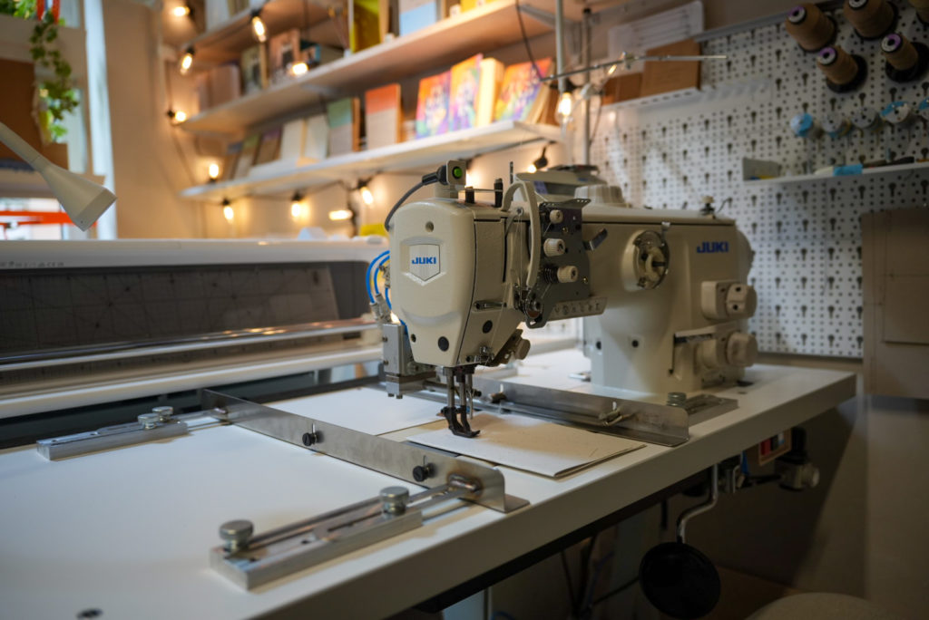 A COVID előtt még nem volt saját műhelyem, de több tucat viszonteladón keresztül elérhetőek voltak a füzeteim. A járvány alatt sok design bolt bezárt, a papír ára pedig megduplázódott a csomagküldés felfutása miatt. Mivel prémium papírral dolgozom, elkezdtem alternatív megoldásokat keresni: vékonyabb, varrott füzettel is lehet igényes terméket készíteni. Mivel a varrás költséges volt, megtanultam magam elkészíteni egy régi favarrógéppel.