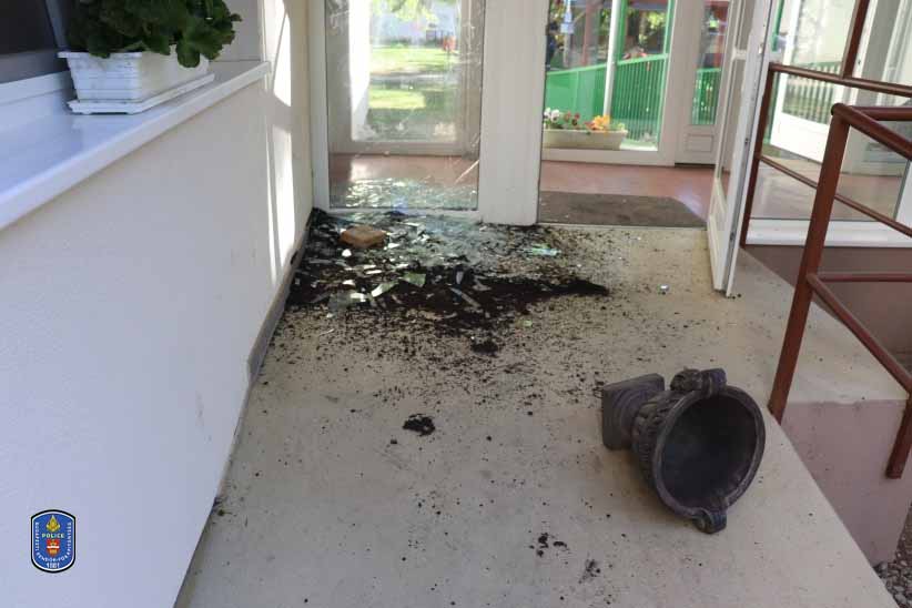 A férfi átmászott a kerítésen, majd különböző tárgyakkal próbálta betörni a ház bejárati ajtajának üvegét. Először egy virágkaspóval kísérletezett, sikertelenül, végül egy térkővel sikerült kárt okoznia. Ezt követően elhagyta a helyszínt.